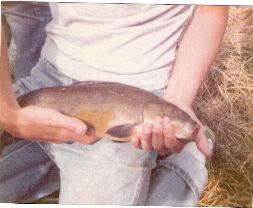 I caught a few fish including a 1lb tench, roach, rudd, gudgeon and a small carp for a total weight of 2lb 2oz and I also lost a carp. For bait I had bronze maggots and I used to buy ready tied hooks to nylon (from Rules of course) and was using a size 20 gold hook (which were very popular at the time) to 1.7lb.