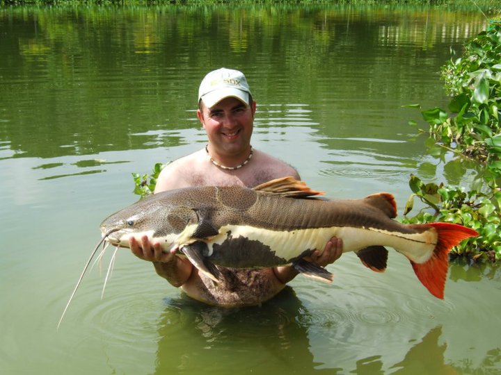 We caught loads of fish, topped off by a stunning arapaima of 330lb, caught by Ash. We also caught Amazon redtail catfish to 66lb, siamese carp to 55lb, Asian redtail catfish, silverbarbs, alligator gar, Mekong catfish to 110lb, sorubim catfish and spotted featherbacks and arrawana.