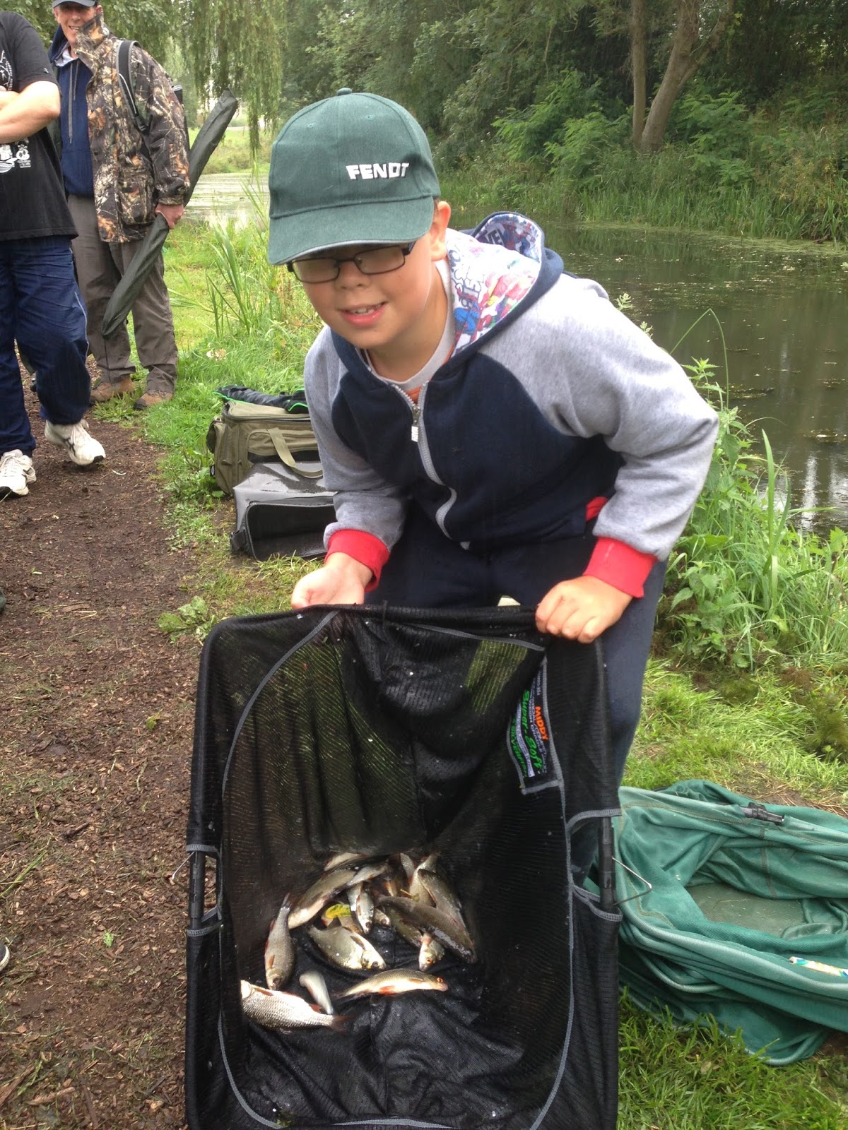 Little five year old George Baker was next on peg 7 and fishing at 6 metres down the middle and getting plenty of bites from small roach and the odd perch on a regular basis, his granddad Butch was giving him a hand but I reckon George is a star in the making. Bradley Lawrence (eleven years old) was on peg 5 and Ned was helping him out and he was catching plenty of fish too.
