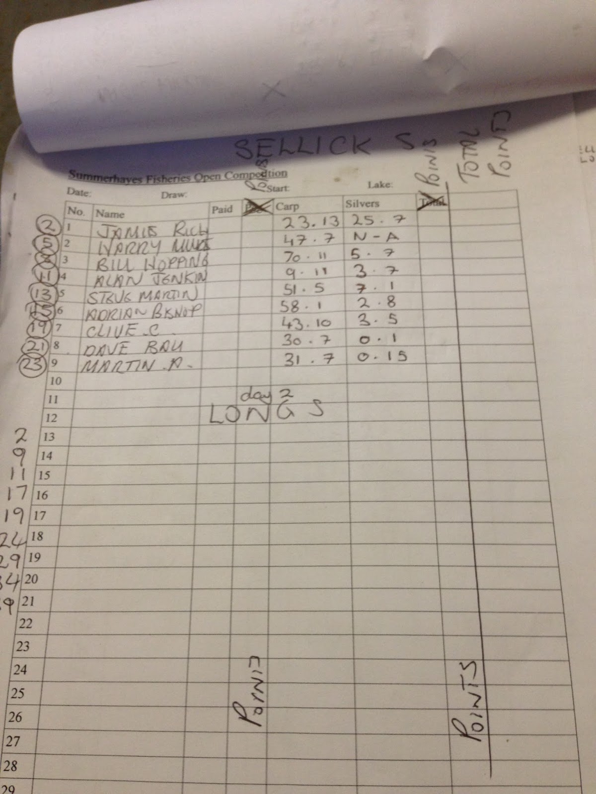 So it’s all to play for tomorrow, it was a very tight frame on Longs today and I reckon 8-10lb of silvers will be needed tomorrow. There are several people in with a chance of double bubble too, be sure to come back tomorrow to see how I get on and if Glynn wins his pound back!