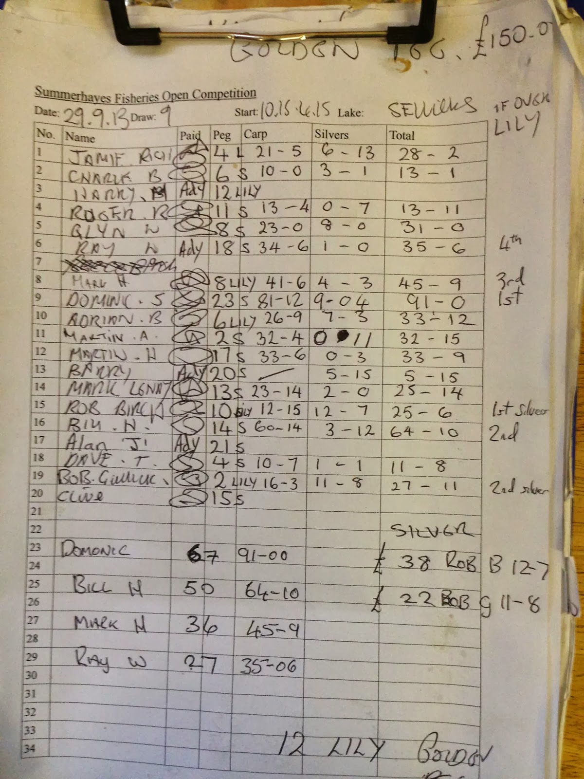 So another disappointing day for me and I seem to have lost my way at Summerhayes, I must admit I’d still not a big fan of Lily although there were some decent silvers weights on there today. Saying that I was only 7lb off framing today and lost several carp plus those two decent skimmers and dropped/bumped off quite a few small fish, so it was possible today but then again I’m sure others lost fish too.