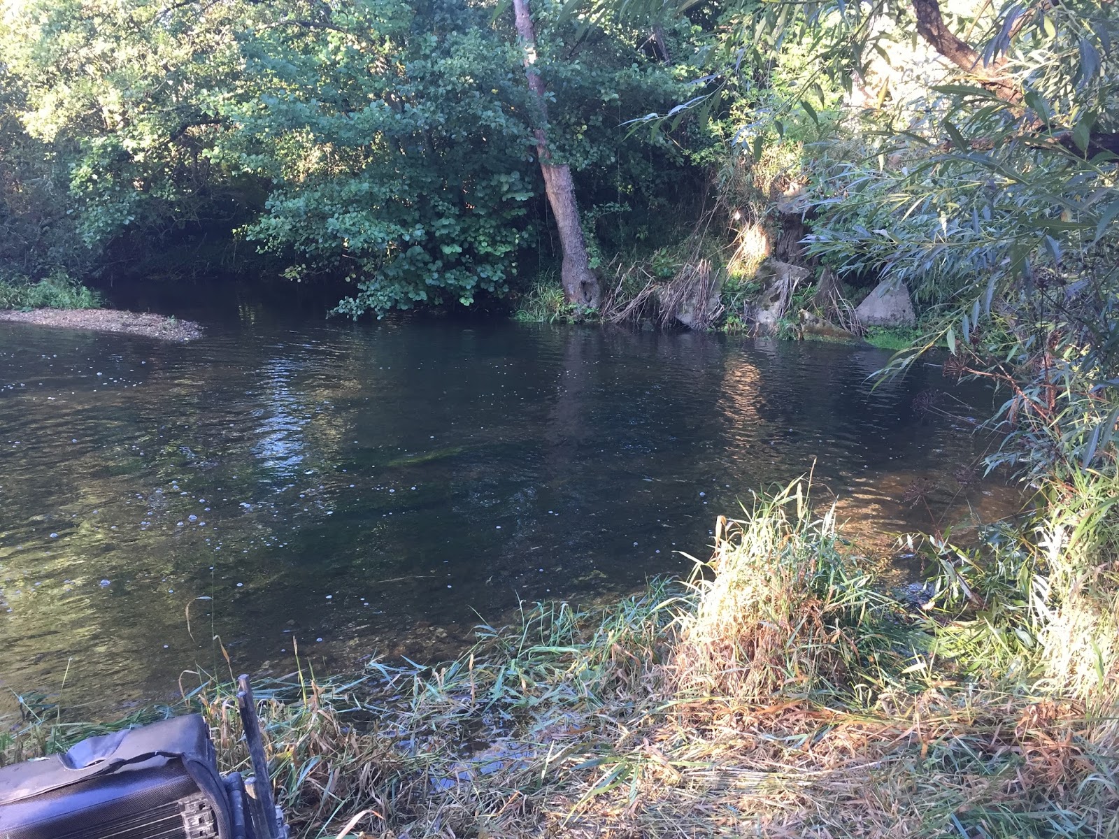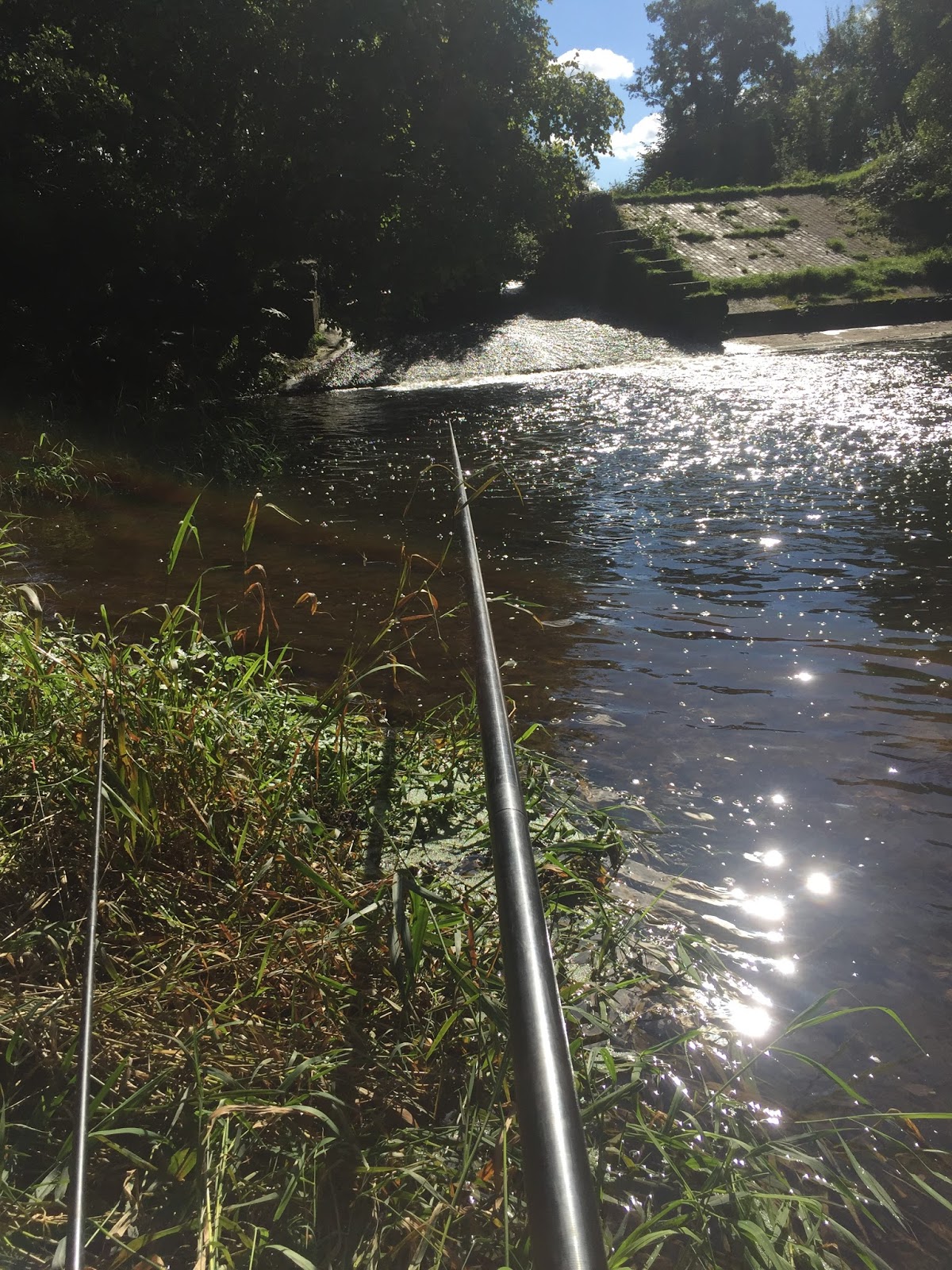 With all the commotion, the river went a horrible dirty colour with loads of dislodged weed coming down and from bagging up I went to catching very little and only added a couple of tiny fish while all the doggie mayhem was taking place. It felt like my match was slipping away but thankfully they didn’t stay too long, it was probably only about 10-15 minutes but it felt like hours! I went back to fishing by the tank traps and added a few more fish and then after the water cleared a bit I went back up towards the weir and started catching well again, including another roach and some more dace.