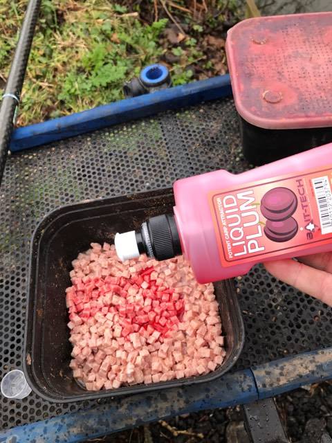 The first product I actually used in the field was the Liquid Plum, it has a lovely soft fruity smell and is a rather gorgeous purple colour, whenever I use meat, I like to give it a boost and in recent years I’ve done well using Bait-Tech’s Liquid Krill and Tuna and I was hoping this new flavour would be just as effective. I always add a little water to stop the meat drying out and then add a couple of squirts of my chosen additive, in this case Liquid Plum.